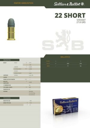 BOITE DE 50 MUNITIONS 22 SHORT (22 court) SELLIER & BELLOT