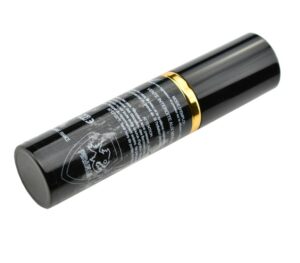 Bombe au poivre ayant l’apparence d’un rouge à lèvres. Couleur noire.