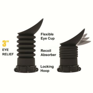 La bonnette UTG LEAPERS est fabriquée à partir de matériaux en caoutchouc avec plusieurs plis et un cône ergonomique pour les yeux, offrant une grande flexibilité et une protection pour la zone des yeux contre le recul.