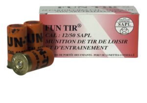 Munition destinée à l’entraînement, tir sur cible 5/7 m, ne peut neutraliser un individu. Mise en garde : la Fun Tir, même si elle ne neutralise pas, peut provoquer de graves blessures. A moins de 3 mètres, elle peut être mortelle. Fiche technique Calibre : 12/50 SAPL Portée maximum : 50 m Portée moyenne : 15 m Diamètre du projectile : 18 mm Nombre de projectile : 1 Matière projectile : caoutchouc Garantie (sous réserve conditions de stockage) : 3 ans Poids Poudre/PN : 1,2 g