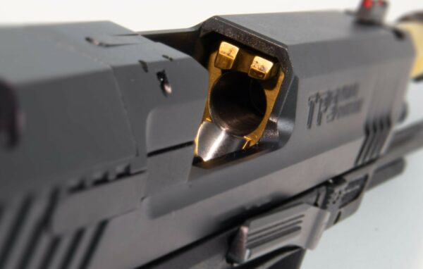 Voici une nouvelle version du pistolet Canik TP9 Elite Combat : Le TP9 Elite Combat EXECUTIVE.Le pistolet TP9 Elite Combat a été élu aux Etats-Uni arme de poing de l’année 2019 par l’industrie de l’armement, l’un des titres les plus prestigieux au monde. Il est conçu à la fois pour la compétition, le tactique et les forces de l’ordre.Cette version EXECUTIVE possède un canon SAI ; Il fait 120 mm (4.72″) avec un filetage de 13.5x1mm (M13) protégé par un écrou amovible, pour l’installation du modérateur de son et un traitement spécifique GOLD PVD offrant une plus grande résistance à l’abrasion et à la corrosion. Sa culasse comporte des rainures à l’avant et l’arrière avec une finition Cerakote.Il est livré avec 4 platines dans la mallette afin de monter n’importe quel viseur du marché. La carcasse est équipée d’un puits de chargeur pour faciliter l’entrée du chargeur. Il possède également une détente usinée en alu et un arrêtoir de culasse ambidextre.