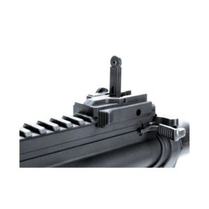 – ALIMENTE PAR 2 CAPSULES DE 12 G DE CO2- SELECTEUR DE TIR AMBIDEXTRE : SECURITE / SEMI-AUTO / RAFALE DE 6 COUPS- CANON INTERIEUR EN ACIER- ORGANES DE VISEE FLIP-UP- QUADRAIL PICATINNY- CROSSE TELESCOPIQUE 5 NIVEAUX