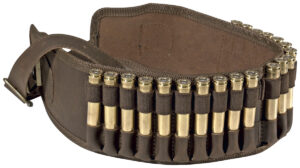 Cartouchière cuir, 20 tubes GC élastiqués. Sangle réglable.