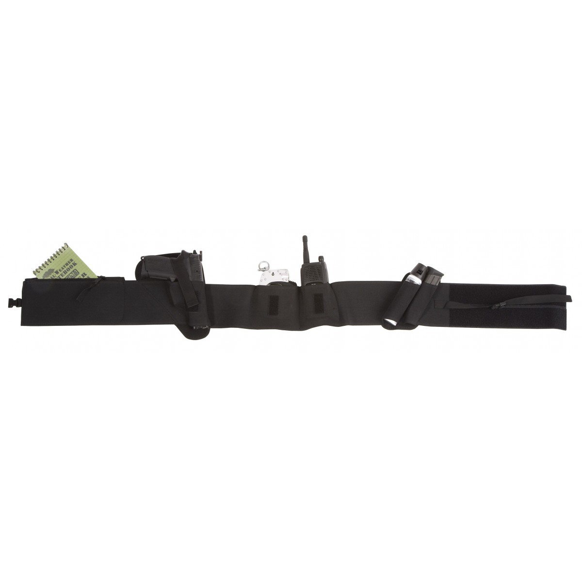 Ceinture élastique de taille unique permettant le port:-du holster-des menottes-de 2 porte-chargeursAvec 2 compartiments:-1 fermé par glissière
