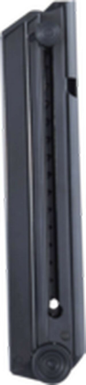 Compatible pour les pistolets LUGER P08Calibre 9x19Capacité 8 coupsPlaquette élévatrice en polymere haute densitéCorps en acier carboneTalon de chargeur en polymère haute densité