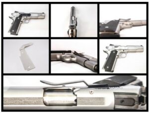 Ce clip en acier permet de porter un pistolet à la ceinture. Le kit comprend une patte en acier qui peut se monter à droite ou à gauche de la culasse, 4 vis BTR avec rondelles fendues et une plaque de verrouillage de percuteur en aluminium usiné – anodisé noir.