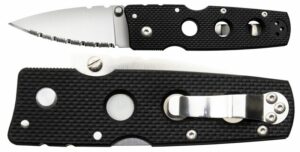 Couteau pliant de type lockback Tri Ad Lock. Longueur fermé de 10,4cm  Lame en AUS-8 de 6,90cm à seration. Epaisseur de 3 mm. Manche en G10. Clip réversible en acier inoxydable.