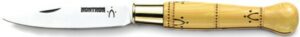 Couteau à virole, manche boule 12 cm, en Buis pyrogravé, lame acier Inox