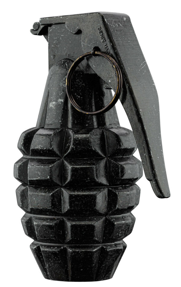 Réplique factice en métal de grenade à main MK2 ou ananas, USA (2ème guerre mondiale).