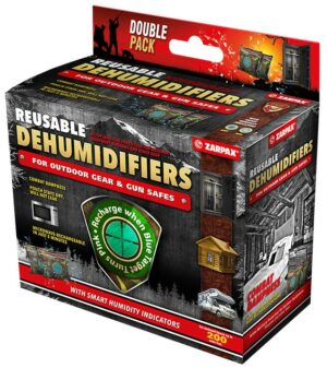 Déshumidificateur réutilisable pour coffres-forts armes et équipements, avec indicateur d’humidité.Peut être régénéré au micro-ondes.Boite de 2 déshumidificateurs de 200 g.Dimensions 12 x 10 cm.
