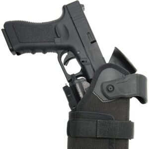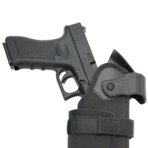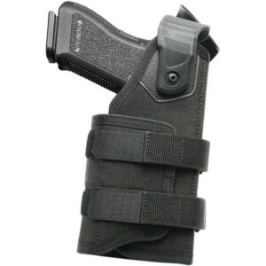 Conçu pour recevoir une arme de poing munie d’un module tactique : il suffit de démonter la cale de mousse et de régler le fond de l’étui