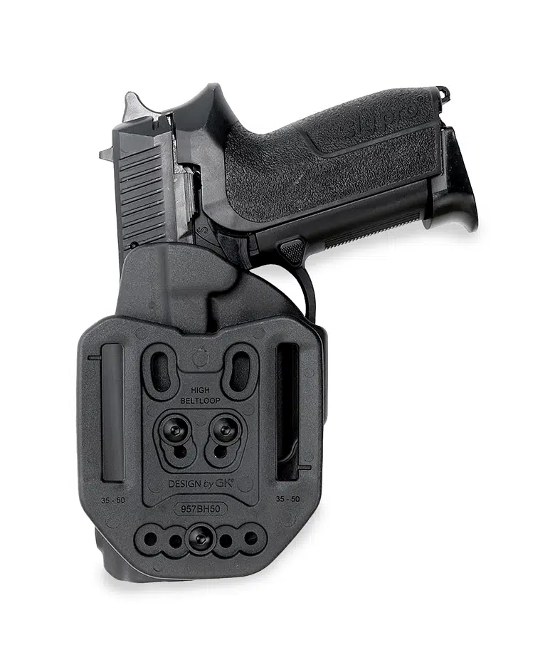 Son passant port haut inclinable et son passant réglable s’adaptent aux ceintures de 35 mm et ceinturons de 50 mm, offrant un port totalement personnalisable. Compatible avec de nombreux accessoires GK, il s’adapte à vos besoins et à votre style d’intervention.
