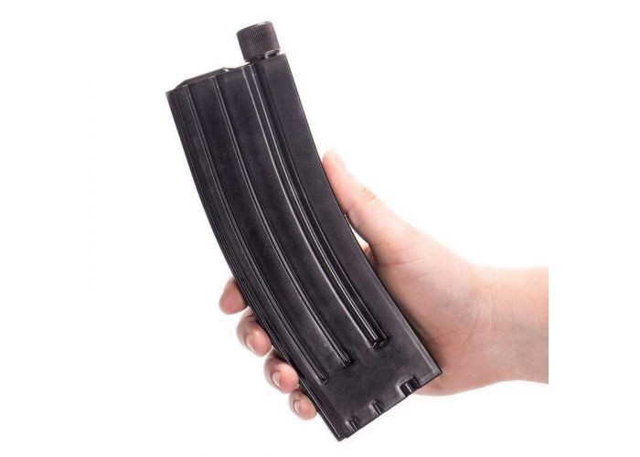 Il a été conçu sur le modèle du chargeur d’un fusil d’assaut AR-15 et peut contenir discrètement 207ml de boisson.