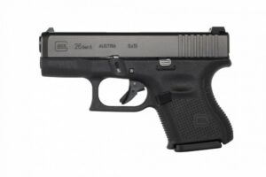 Caractéristiques :- Pistolet semi-automatique calibre 9×19.- Canon match GMB (Glock Marksman Barrel) de 3,5″(89mm) martelé à froid, à rayures polygonales améliorées.- Protection exceptionnelle contre la corrosion et l’usure grâce à la nouvelle finition nDLC*.- Poids : 560 grammes.- Livré en mallette avec chargette, 2 chargeurs de 10 coups, et kit de nettoyage et 4 dosserets de poignée.- Fabriqué en Autriche.