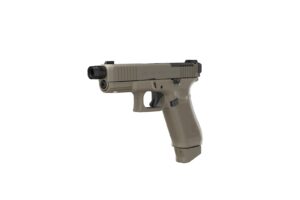 GLOCK présente ici l’édition Hunter du G45 MOS spécifique par sa couleur vert olive et ses équipements: