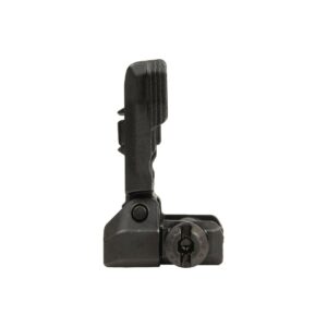 Cette mire se fixe à l’avant du fusil d’assaut, directement sur un rail Picatinny. Elle est rabattable pour utiliser une aide à visée.