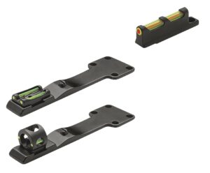 Caractéristiques :- Ensemble hausse réglable et guidon à visser- Hausse réglable à deux points lumineux verts- Guidon fibre optique à une ou deux couleurs selon modèle- Modèle universel- Livré en blister