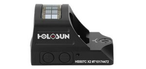 Réticule : (1 MOA = 3 cm à 100 mètres).Couleur du réticule : Rouge.12 niveaux d’intensité dont 2 compatibles pour les visions nocturnes.Point rouge équipé d’un panneau solaire.Technologie Shake Awake (Sallume automatiquement à la détection de mouvement).Réglage de la luminosité : Bouton +/-.Parallaxe : Sans.Fabriqué en aluminium.Compatible avec les systèmes MOS.Graduation : 1 click = 1 MOA.Température de fonctionnement : -30°C à +60°C.Point rouge certifié IP67.Livré avec : un outil de montage, une microfibre et une pile CR2032.ATTENTION LE HHS507C est livré sans Adaptateur picatinny.