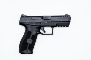 Pistolet à percuteur lancé, moderne et ergonomique en 9mm.