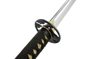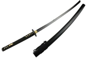 Katana robuste et puissant équipé d’une lame en acier forgé 5160 à haute teneur en carbone et une poignée (Tsuka) en bois de haute qualité avec peau de raie véritable.
