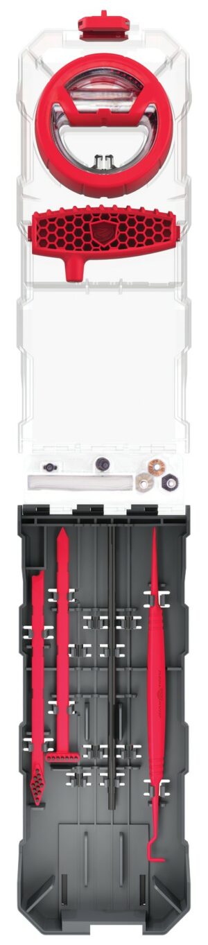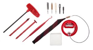 Le gun boss multi kit est complet pour entretenir du canon à la chambre et l’intégralité du mécanisme.Il s’utilise aussi bien sur le terrain qu’à la maison pour une maintenance parfaite de votre arme avec son boitier ultra résistant en polycarbonate qui sert de support dès son ouverture.Il contient :- le célèbre BORE BOSS avec son écouvillon adapté au calibre- 1 poignée ergonomique- 1 tige acier (en 4 parties)- 3 écouvillons différents (laine, nylon et bronze)- 2 embouts nylon (pour les patchs)- 1 tige ACCU GRIP (une extrémité avec crochet et l’autre droite)- 2 brosses de formes différentes en nylon- 25 patchs