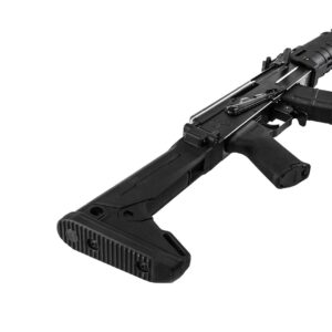 La crosse Magpul Zhukov-S AK47/74 est une crosse pliante pour l’AK moderne. La crosse Zhukov-S met de côté les défauts des crosses AK traditionnelles. Elle offre une crosse pliante et repliable avec des supports de bretelles QD, des supports de joue modulaires, et une plaque de couche en caoutchouc absorbant les chocs.
