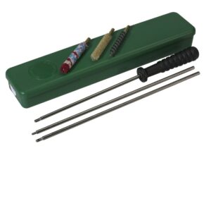 Nécessaire de nettoyage pour arme de poing ou arme d’épaule avec baguette acier 3 pièces.