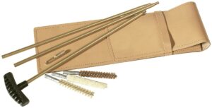 Nécessaire de nettoyage, baguette acier 3 pièces, poignée plastique. Livré en trousse toile.