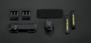 Télécommande sans fil livrée avec 2 Rails Picatinny, 2 sangles Hook-and-loop, une grande sangle Hook-and-Loop et un capuchon sans fil pour la lampe torche.