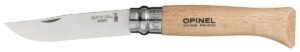 Lame acier inoxydable Sandvik de forme dite Yatagan (incurvée au niveau de la pointe) et au profil bombé qui garantissent une qualité de coupe incomparable. L’acier inoxydable Sandvik mis au point pour Opinel est réputé pour son tranchant et sa facilité d’entretien. L’acier inoxydable capable de subir le traitement thermique qui lui donne sa bonne dureté est appelé martensitique. Il a une teneur en carbone au moins égale à 0,40 % ce qui permet d’obtenir un tranchant satisfaisant sans être sensible à la corrosion.Manche hêtre vernis naturel. Système double sécurité Virobloc. Cette bague de sécurité en acier inoxydable permet de bloquer la lame en position ouverte pour une sécurité d’utilisation mais également en position fermée pour une sécurité de transport.