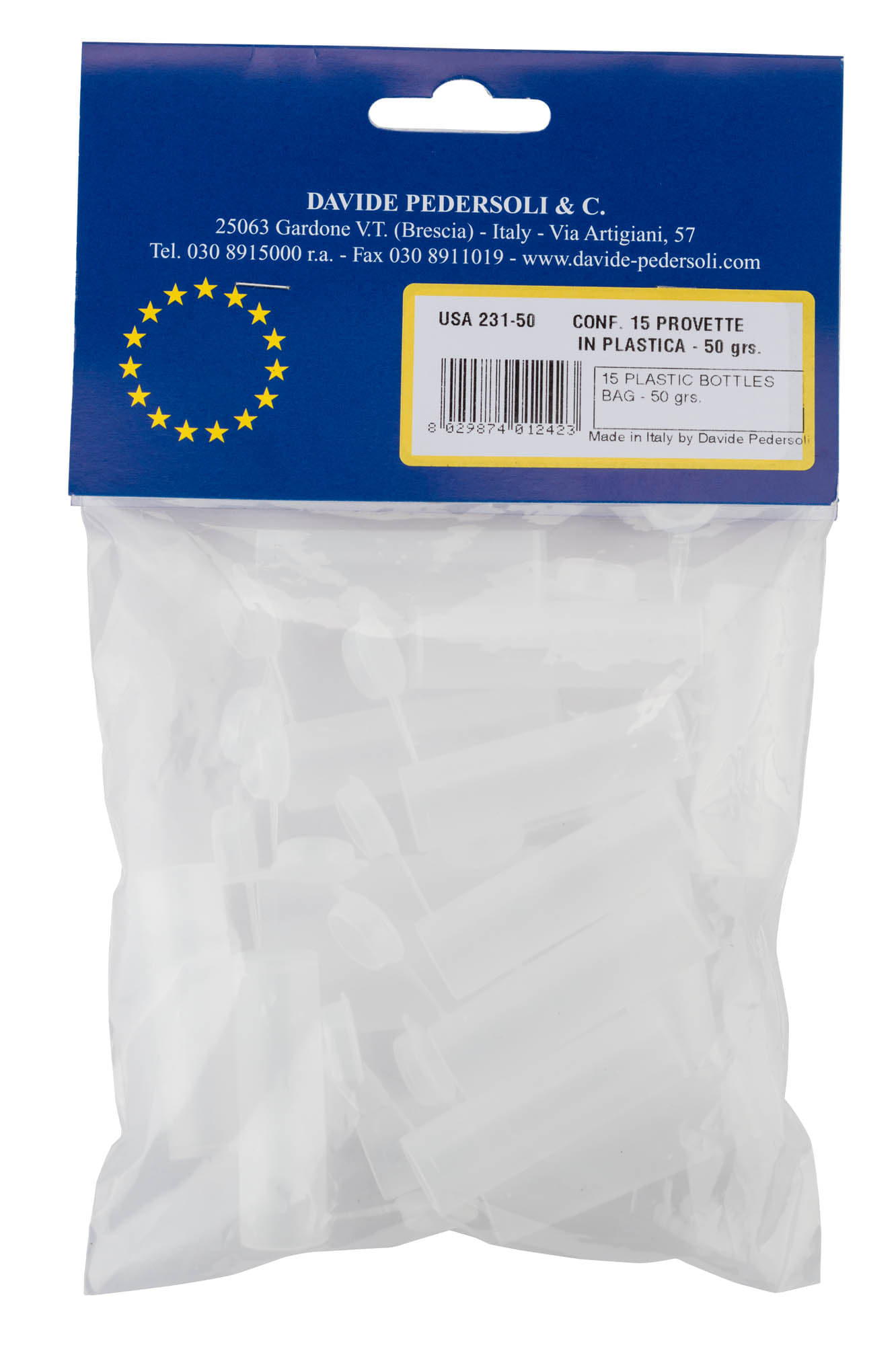 Lots de 15 tubes à essais qui permettent de transporter de la poudre noire pré-dosée pour votre arme et de la charger sans risque sur le pas de tir.