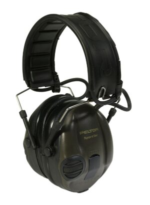 Atténuation du bruit 26 décibels, casque électronique, son réglable, grande étanchéité au bruit et faible pression. Poids 300 g. Coloris kaki. Livré avec coquilles oranges interchangeables.