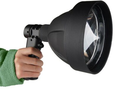 Lampe à LED 1300 Lumens de type pistolet, un vrai projecteur longue portée idéal pour la hutte, le comptage du gibier, les sorties nocturnes… Le projecteur 1300 lumens a une portée d’environs 650 m et une autonomie de 2h30. Fabriqué en ABS (acrylonitrile butadiène styrène), une matière qui a la particularité d’être légère et résistante aux chocs.