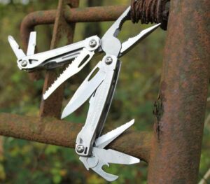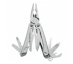 Caractéristiques :- Mâchoires et coupe-fil actionnés par ressort- Pinces normales et à bec effilé actionnées par ressort- Dénudeur de fil- Couteau en acier HC2420- Scie- Lime à bois/métal- Règle 3,8 cm- Tournevis petit, moyen et cruciforme- Ouvre-boîte et décapsuleur- Mousqueton décapsuleur amovible- Clip de poche amovible- Œillet pour cordon- Livré avec fourreau en croûte de cuir