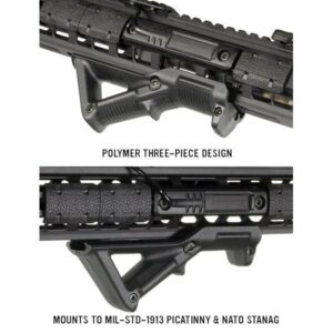 Poignée avant angulaire compatible avec la plupart des garde-mains dotés de Rail Picatiny M1913. l’AFG prends en compte la position naturelle des mains et offre plus de confort et d’ergonomie au tireur avec le support de doigt interchangeable. L’angle réduit la fatigue des bras et permet de mieux tenir son arme, induisant davantage de précision dans le tir. Le recul étant mieux compensé, vous gagnez donc en stabilité lors des tirs en rafale.