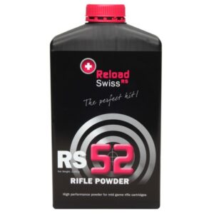 Utilisation: L’utilisation de la poudre propulsive RS52 est comparable à celle de la RS50. Il s’agit en effet également d’une poudre typiquement adaptée au calibre .308 Win. La RS52 se caractérise par un excellent rapport pression/vitesse et par un comportement de température plat.