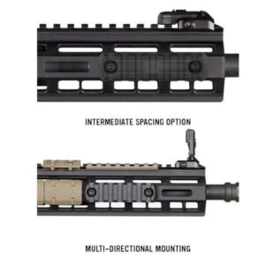 Cette section de rail picatinny avec 7 slots est conçu pour être utilisé avec les garde-mains M-LOK® pour permettre la fixation de différents accessoires tel que les lampes, les poignées verticales, etc…