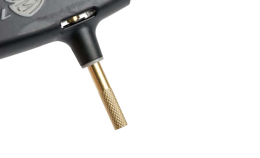 Kit de nettoyage universel armes de poing et armes longues comprenant : une tige filetée à tête amovible, des brosses et têtes fendues.