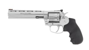 Le King Cobra Target 22 LR est fabriqué en acier inoxydable forgé aux États-Unis. Le canon en acier inoxydable d’une seule pièce est conçu pour la plus grande précision. Il est équipé d’une hausse réglable, d’un guidon en fibre optique et de poignées en caoutchouc surmoulées Hogue®.