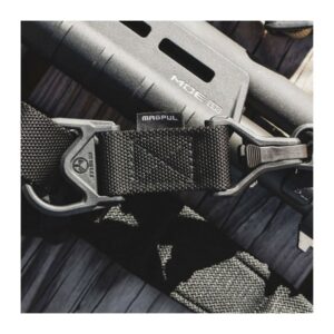Conçue avec les retours d’expérience des instructeurs Magpul, la sangle MS3® Gen 2 est une sangle multimission qui a été développée pour être utilisée sur de nombreuses armes et de différentes manières. Elle permet de s’adapter aux missions et environnements tactiques changeant. D’une largeur de 3.2 cm (1.25’’), la sangle MS3® Gen2 est dotée à chaque extrémité d’un clip en acier à accroche rapide breveté (appelé « Paraclip™ »). Cela permet de s’accrocher ou de se décrocher rapidement des anneaux présents sur les différents fusils d’assaut. Aussi, cela permet de transformer la sangle rapidement d’un modèle à 2 points d’accroche sur l’arme à un modèle à un point d’accroche sur l’arme type « goutte d’eau ». Ces crochets comportent un système de verrouillage « Cross-Bolt Lock Bar » pour éviter tout décrochage non souhaité par l’utilisateur. Cette sangle est également réglable rapidement à une main grâce à son système coulissant élargi qui assure une bonne préhension.
