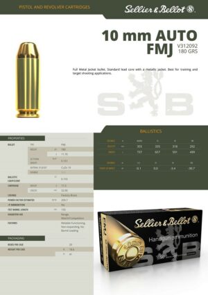 SELLIER & BELLOT 10MM AUTO FMJ 180GR