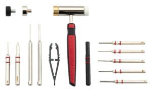 10 chasses goupilles, 1 maillet cuivre / plastique & une paire de pincettes.