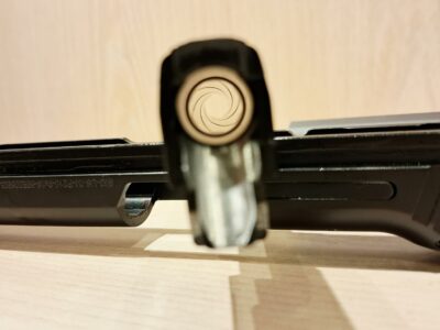 Livré en mallette avec deux chargeurs et une paire de plaquettes G10 de rechange.