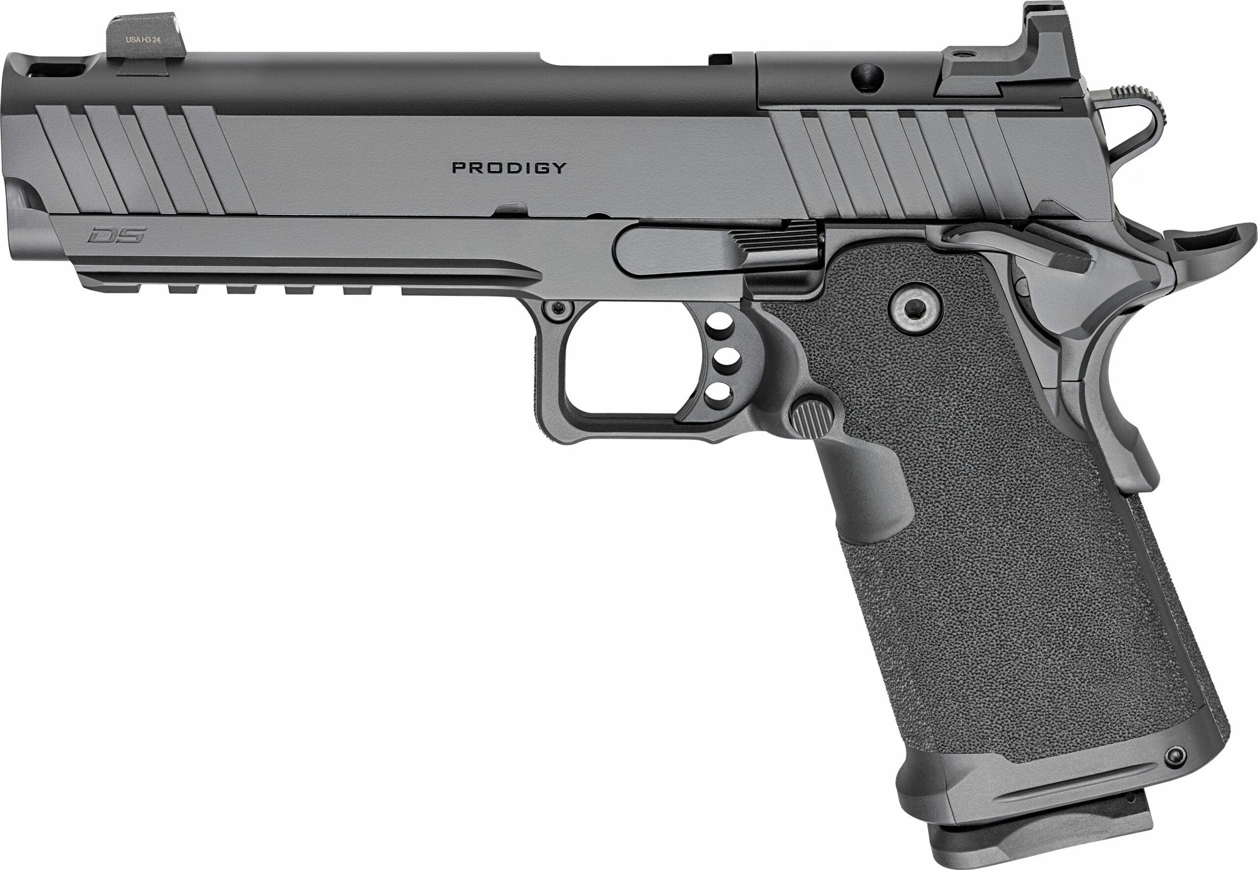 Le Prodigy de Springfield Armory® reprend la plate-forme éprouvée de 1911 et l’améliore avec une capacité double pile et un ensemble de fonctionnalités axées sur les performances. Reconfiguré autour d’un chargeur à double pile, le module de préhension en polymère du Prodigy se monte sur son cadre en acier forgé offrant des capacités de 17+1 et 20+1. Optique prête avec une sécurité ambidextre et un rail Picatinny, le Prodigy combine les caractéristiques les plus appréciées du 1911 avec une capacité moderne pour des performances inégalées.