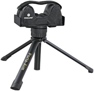PORTA-AIM Fabriqué à partir d’aluminium robuste, ce trépied fournit un soutien stable pour le tir. Il est facile à transporter pour le chasseur en mouvement. – Coussin antivibration repose-crosse, – Pieds en caoutchouc antidérapants avec pointe, – Microréglage de l’élévation, – Support pivotant à 360°, – Hauteur réglable : 22,5/32 cm, – Dimensions : 31 x 14,5 cm, – Poids 800 g.