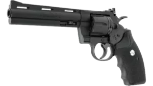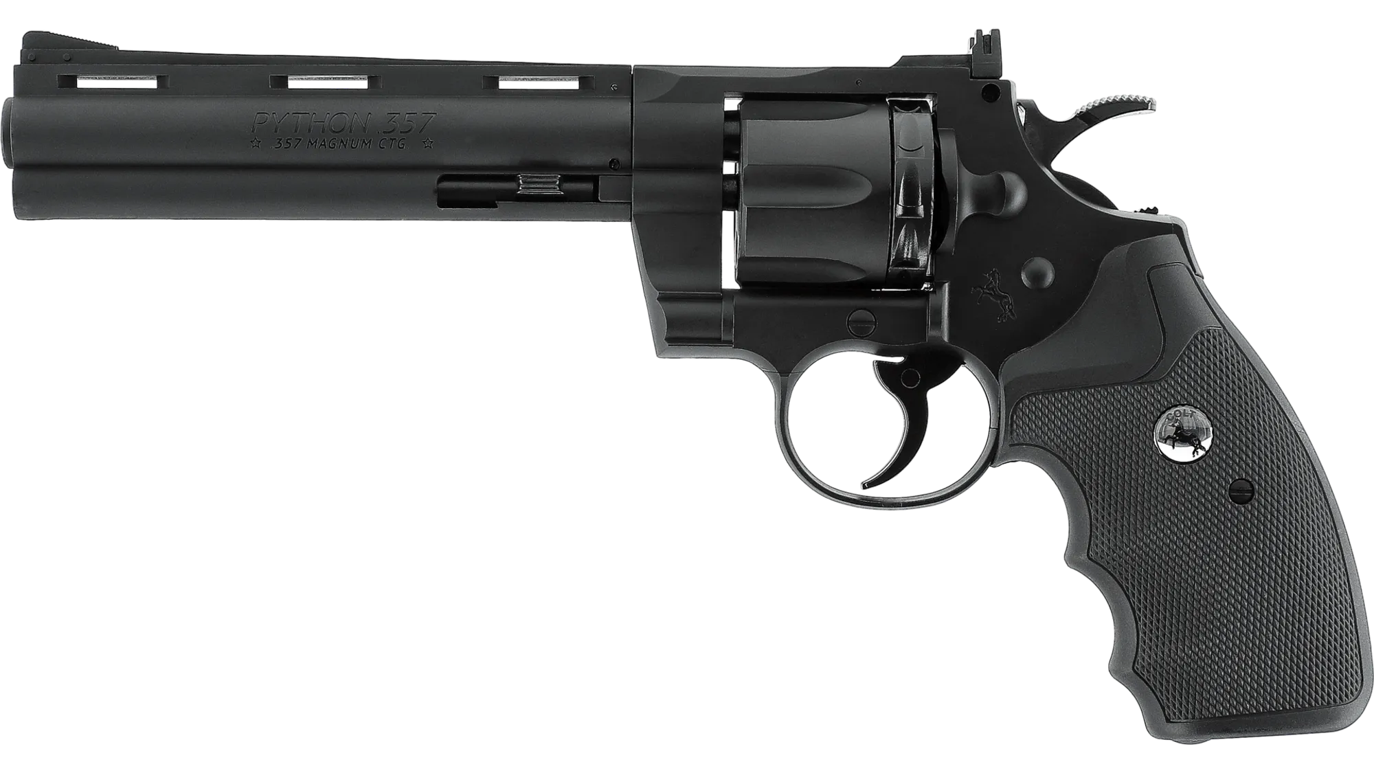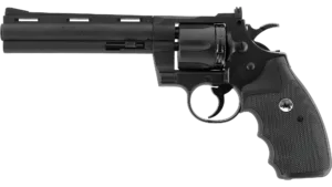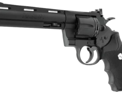 Le Colt Python 6″ CO2 reprend le style emblématique du modèle de 1955 avec son rail de canon ventilé et son boitier de tige d’éjection caractéristique. Il est conçu pour tirer aussi bien des plombs que des billes acier de calibre .177 (4,5 mm) grâceà un barillet de 10 coups. Sa hausse entièrement réglable permet un ajustement précis.