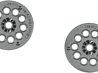 Livré avec deux barillets plombs en métal et un pour BBs en polymère.