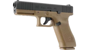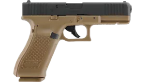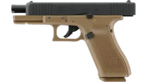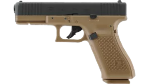 Le Glock 17 Gen5 présente une structure de couleur coyote, Black Coyote, avec culasse noire et commandes assorties. Cette réplique airsoft CO2 dispose d’une culasse en métal, d’un blowback puissant et d’un chargeur tout-en-un coyote. Elle intègre une sécurité automatique de détente, une sécurité coulissante et un rail Weaver sous le canon pour l’ajout d’accessoires.