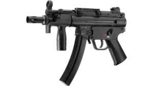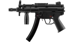 Le HK MP5 K en version airsoft CO2 est blowback. Son bloc hop-up fixe garantit des tirs stables, et son rail permet l’ajout d’accessoires. Son frein de bouche amovible et son chargeur low-cap complètent cette réplique compacte et polyvalente.