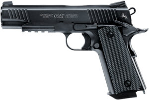 Sécurité manuelle, simple action, hausse fixe, système blow-back, carcasse métal, plaquettes plastiques